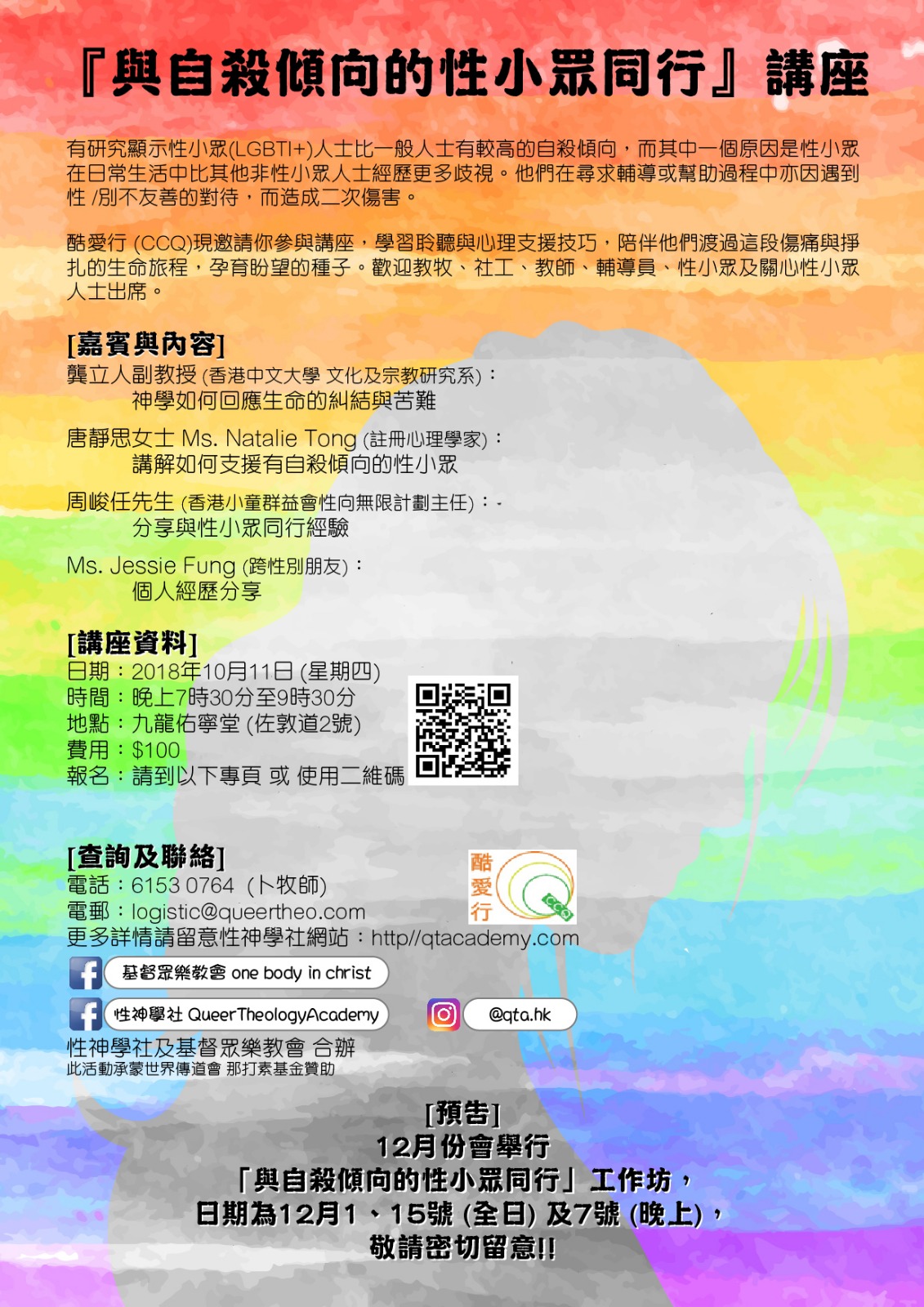 本次課程由性神學社(Queer Theology Academy, QTA)主辦,延續自2014年以來所舉辦的華人酷兒神學暑期工作坊傳統,曾在2014、2019、2022與2024年舉辦四屆,是亞洲地區酷兒神學教育的開拓者與實踐者。今年的進階工作坊特別為已參與初階課程,或對酷兒神學已有基本認識的華人朋友設計。